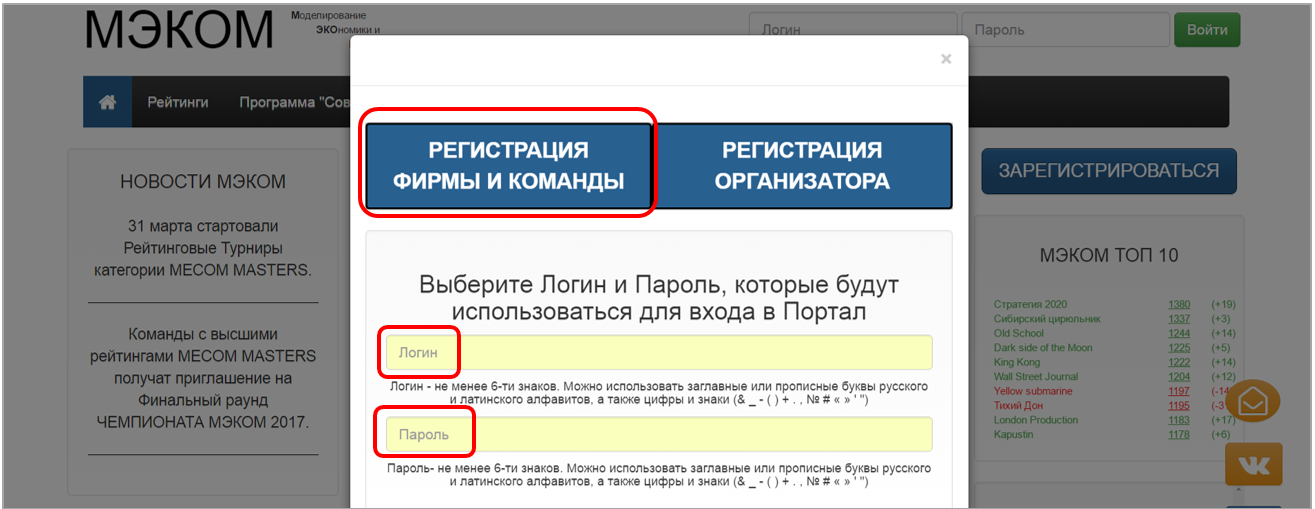 Название Фирмы - лицо Команды, которая ей управляет. Многие команды участвуют в МЭКОМ годами.