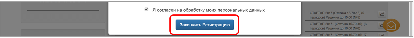 Кнопка «Закончить регистрацию» появляется только в случае, если вы нажали на кнопку «Согласен на обработку персональных данных».