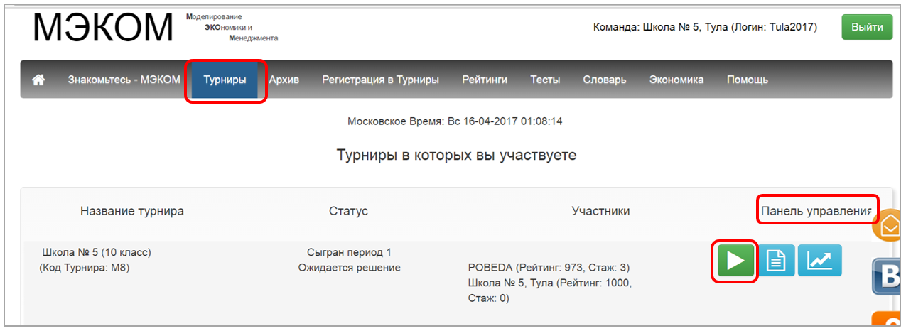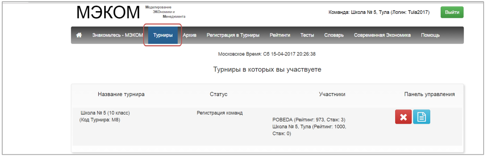 Более подробно об участии в Турнирах см. раздел № 3. Участие в Турнире.