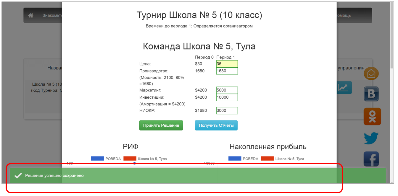 Ввод решений и каждого их изменения завершается нажатием кнопки «Принять решение»